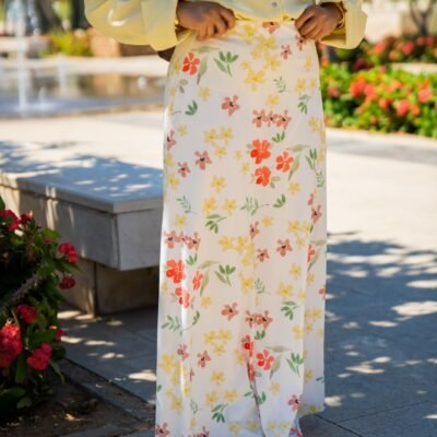 Feminine and flowy skirt crafted from soft crepe fabric, featuring our exclusive in-house print for a unique and elegant look. Designed with a flattering silhouette that moves effortlessly, perfect for daytime outings and summer styling. Lightweight and breathable for all-day comfort.